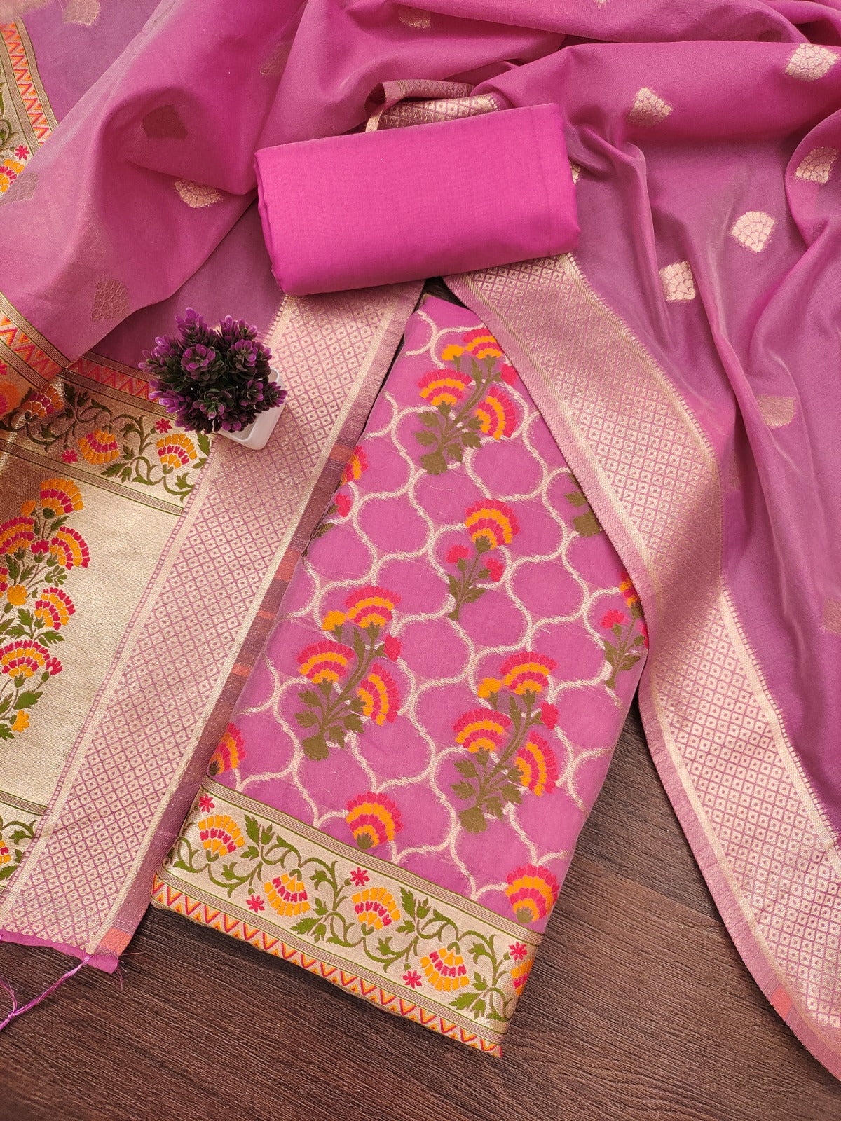 Designer Paithani Woven Unstitched Suit With Bottom