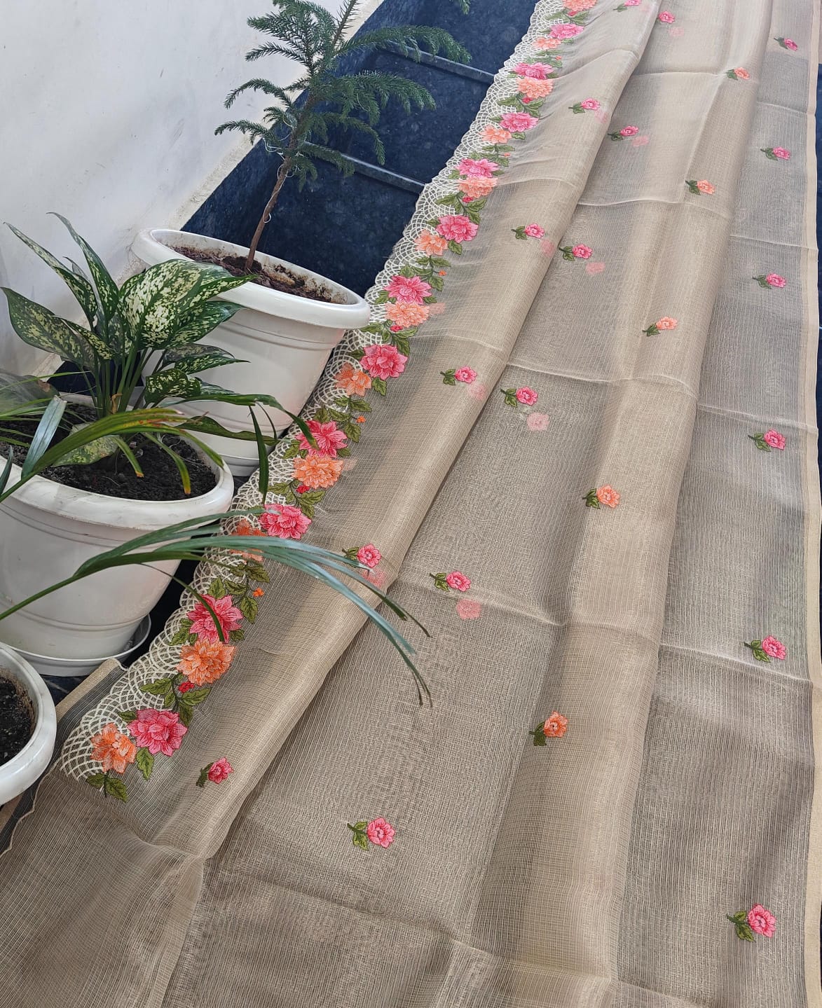 Kota Doria sarees represent a pinnacle of traditional Indian weaving, originating from the textile heartland of Rajasthan. This exquisite piece features the signature lightweight, transparent cotton fabric that Kota Doria is renowned for, combined with intricate Gotta Patti embellishment work. The delicate gold or metallic threadwork adds opulence and dimension to the fabric's natural sheen. Perfect for festive occasions, weddings, and celebrations, this saree drapes elegantly while maintaining breathability—ideal for warm climates. The craftsmanship reflects generations of artisanal expertise, making it a timeless investment piece that seamlessly blends heritage with contemporary styling.