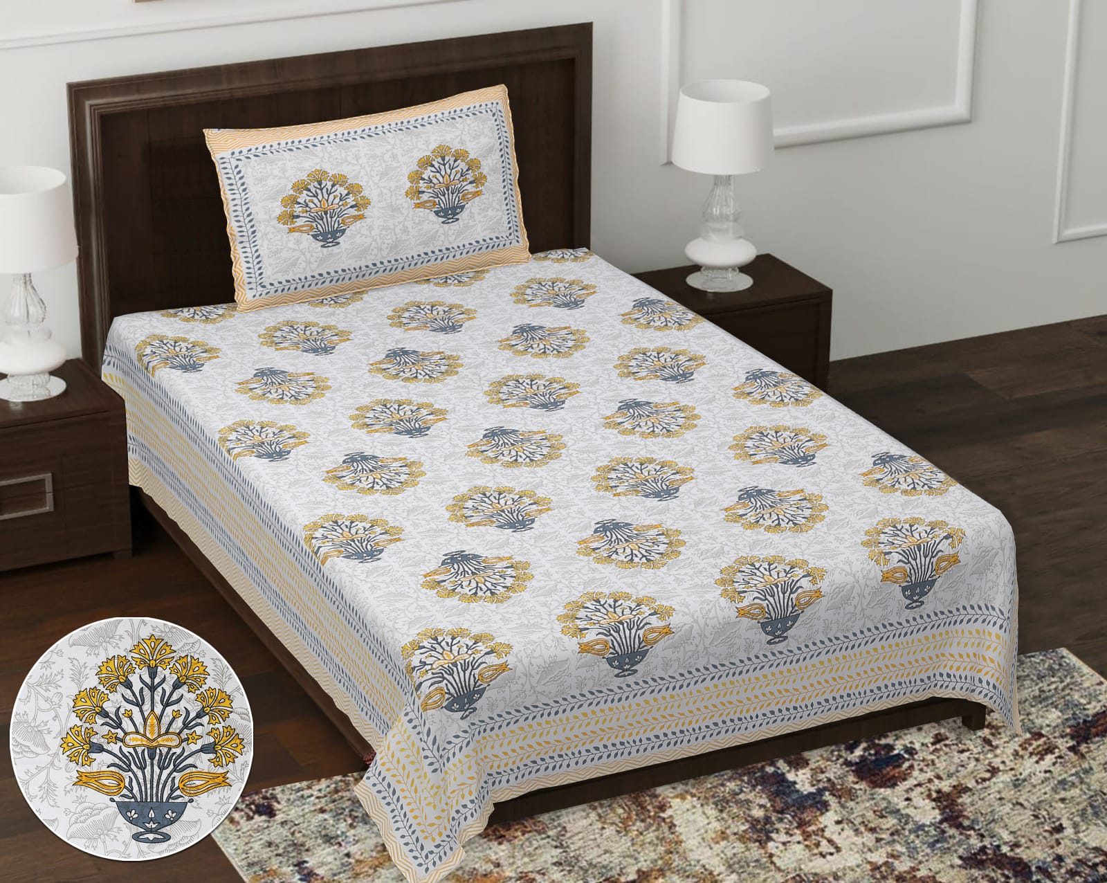 Pure Cotton Digital Print Single Bed Bedsheet With 1 Pillow Cover