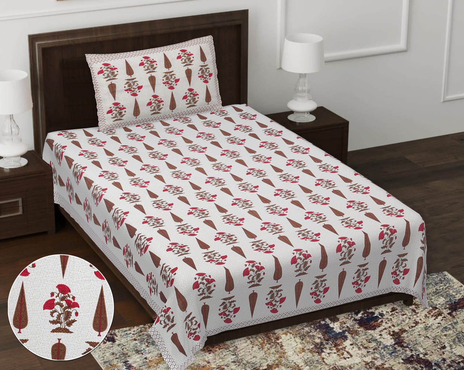 Pure Cotton Digital Print Single Bed Bedsheet With 1 Pillow Cover