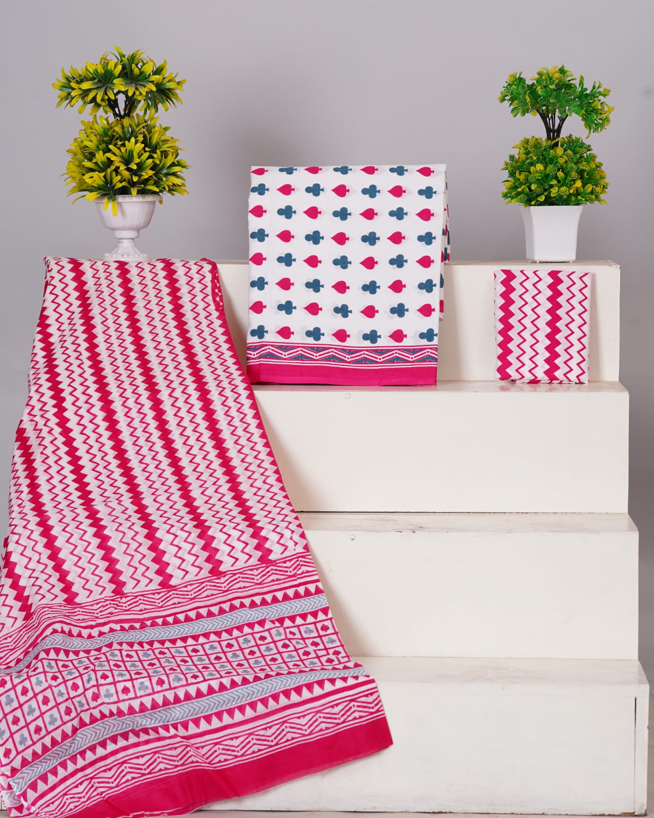 Pure Cotton Jaipuri Hand Block Print Unstitched Suit With Mul Cotton Dupatta.