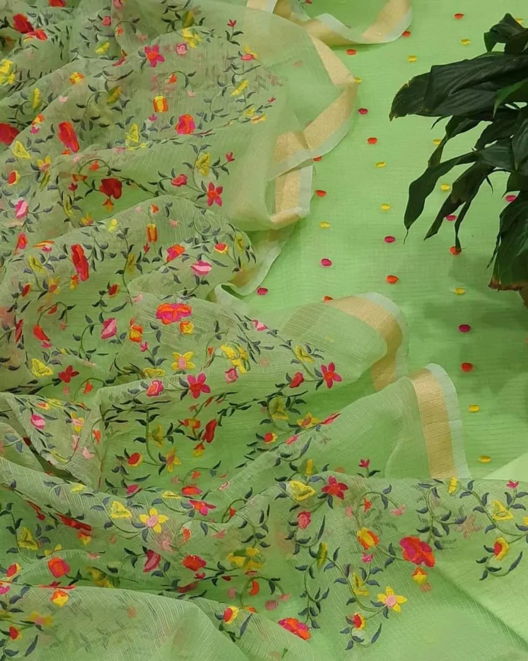 Pure Kota Doriya Embroidery Work Unstitched Suit With Bottom.