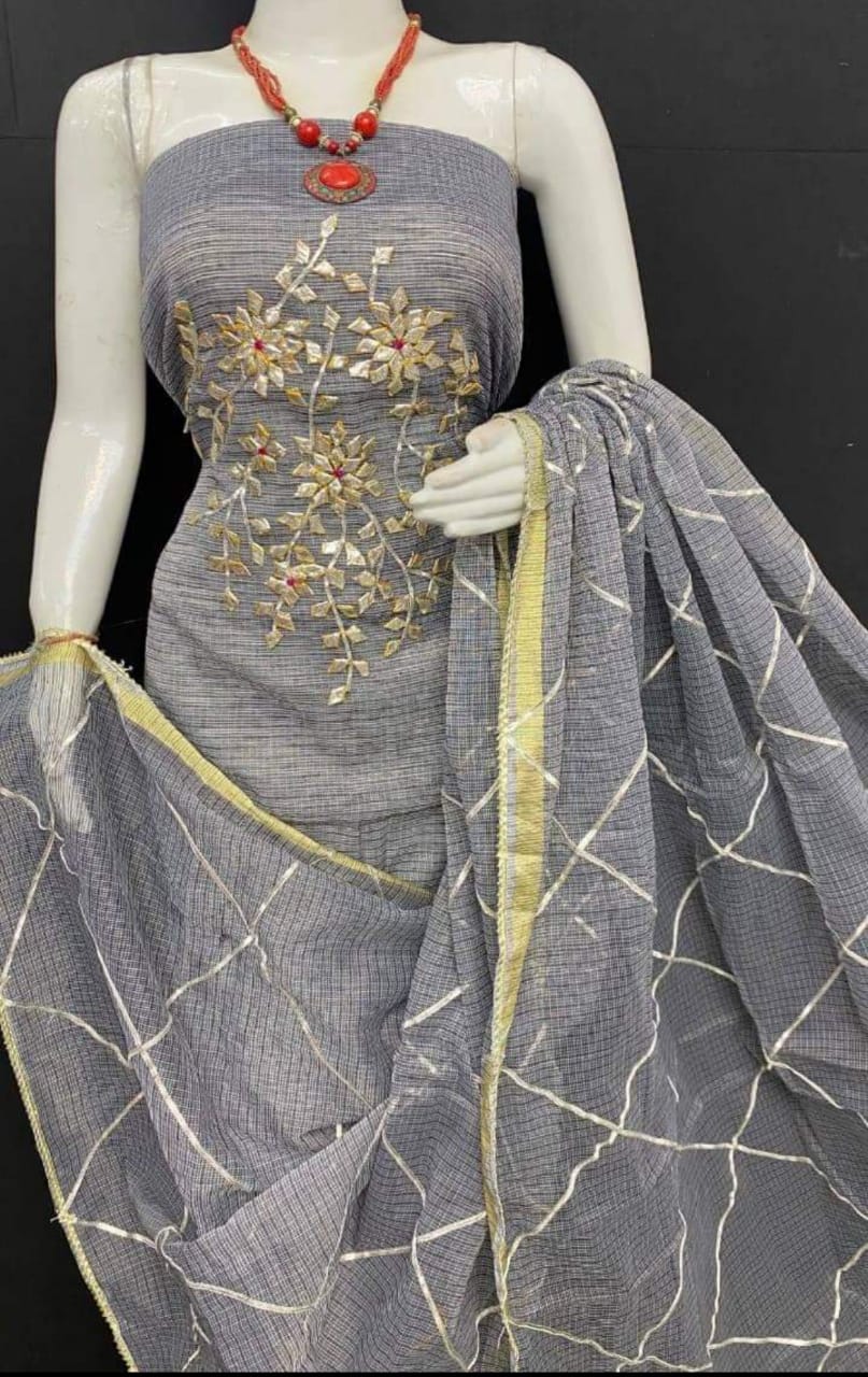 Pure Kota Doriya unstitched suit with gota patti work