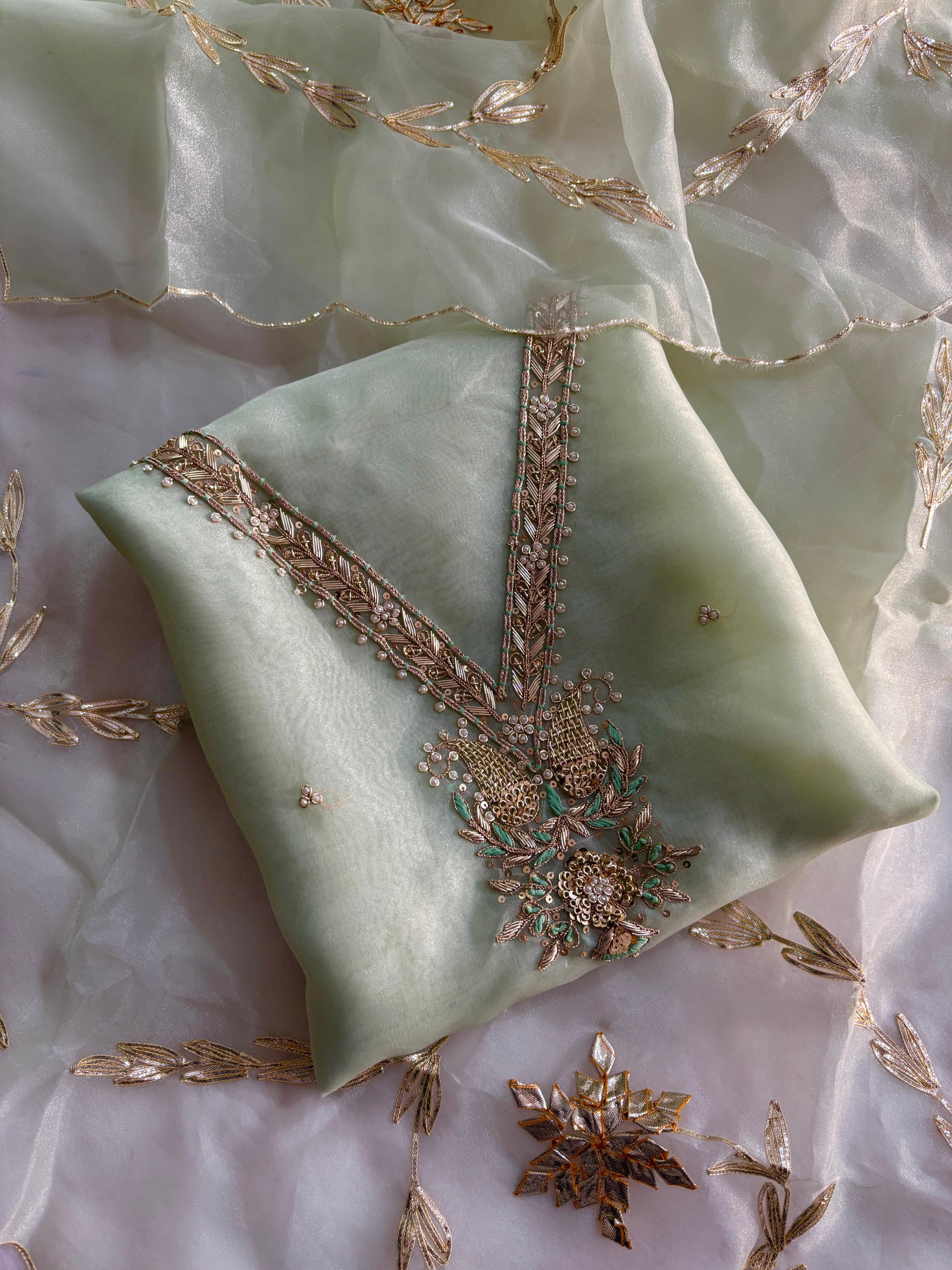 Pure Organza unstitched Suit With Gota Pati Work Dupatta
