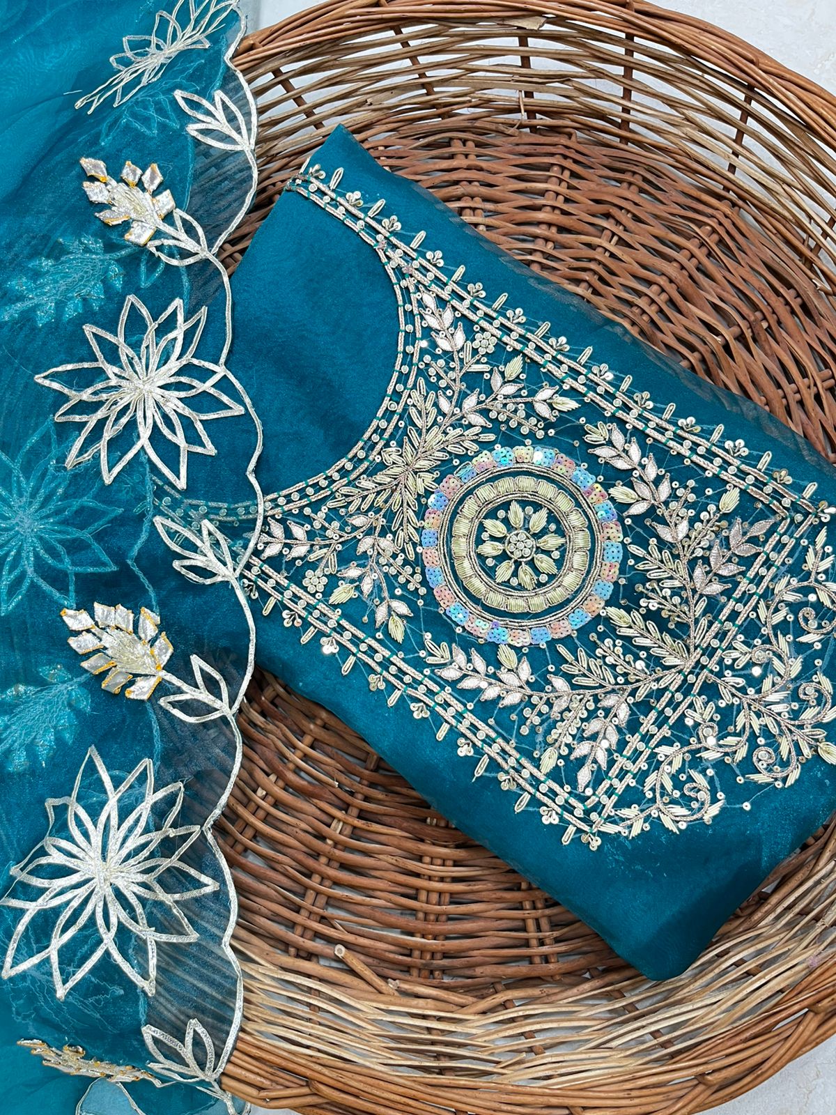 Pure Organza unstitched Suit With Zardogi Work Dupatta Gota Patti Work