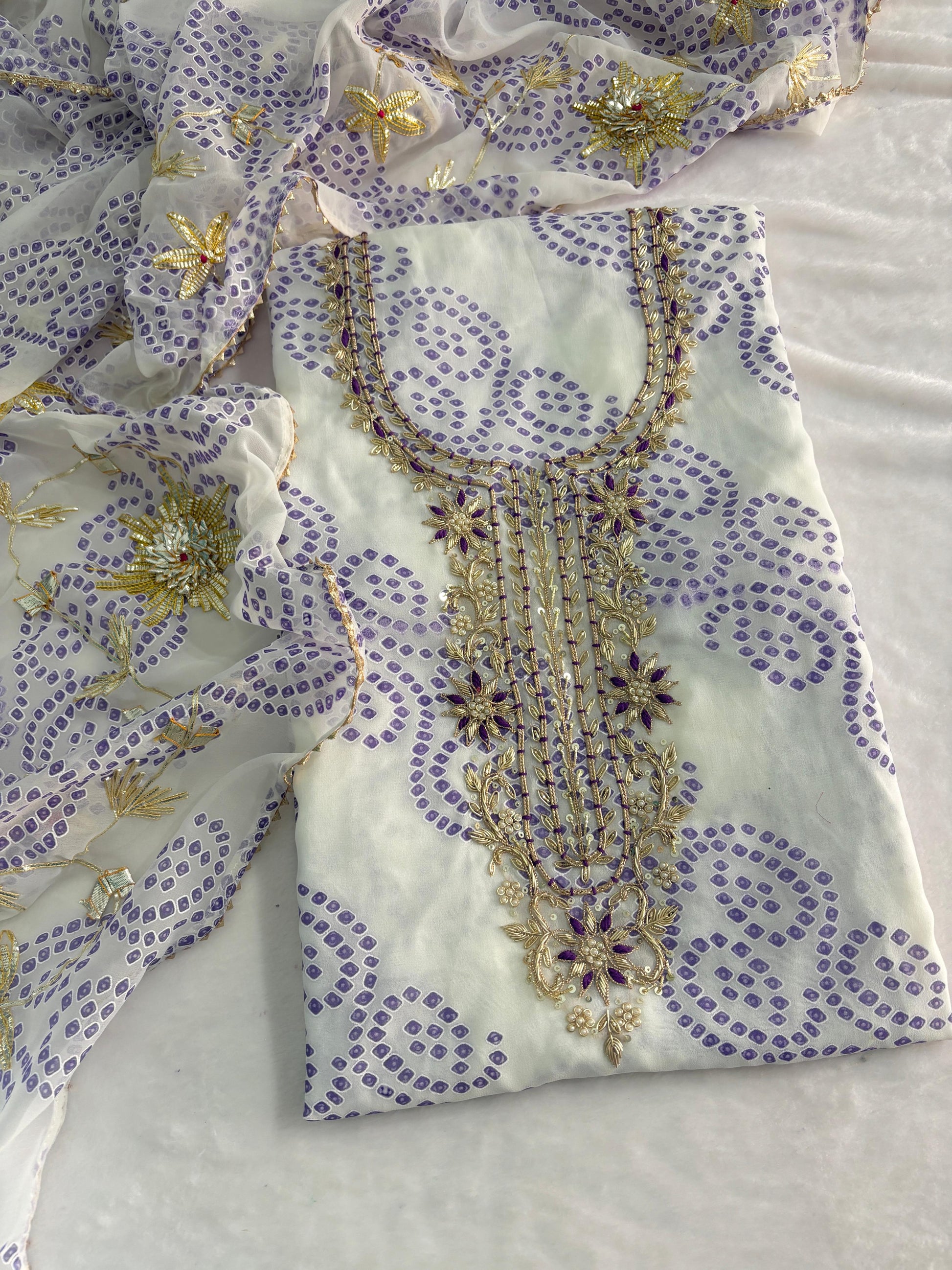 Pure Soft Georgette unstitched suit Zardogi Work With Dupatta